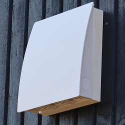 Afstandsstykket sættes på ydersiden af huset, og danner dermed en afstand til enheden og virker som en forlænger til væggen.