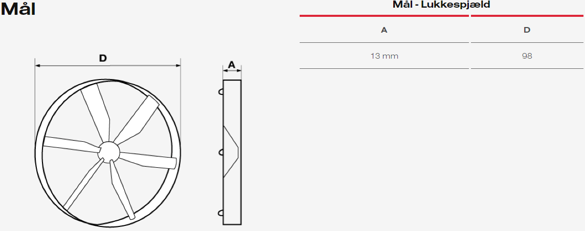 Som det ses af billedet, så er det et meget smalt lukkespjæld på kun 13 mm og derfor velegnet til at bruge i smalle ydervægge.