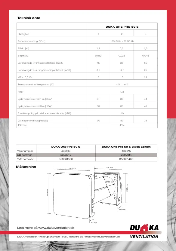 DUKA One Pro 50 S Wi-Fi – Smart ventilation med varmegenvinding