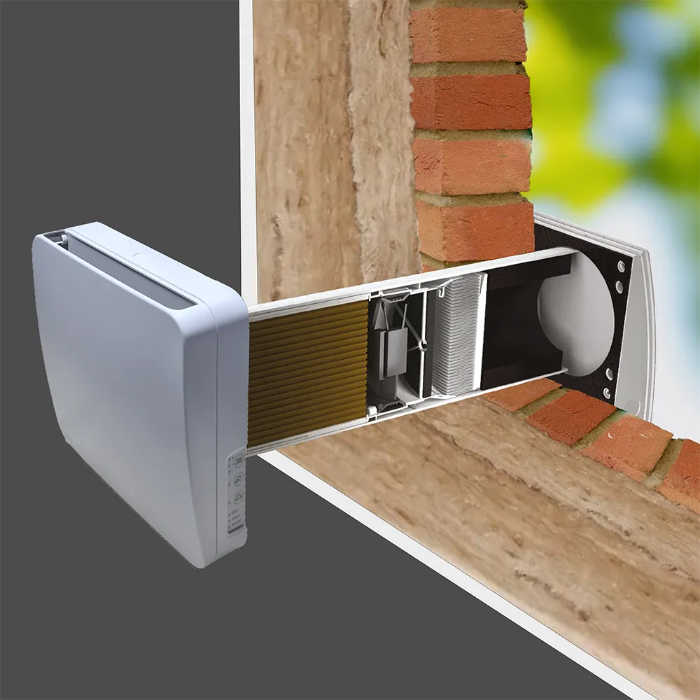 Ventilatoren er velegnet til rum på op til ca. 27 m² og bidrager effektivt til at reducere fugt, CO₂ og radon. Samtidig bevares varmen i boligen, så du opnår frisk luft uden unødigt varmetab.