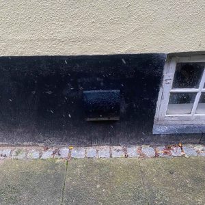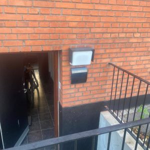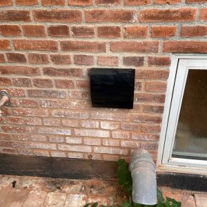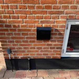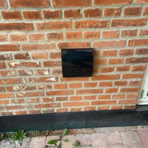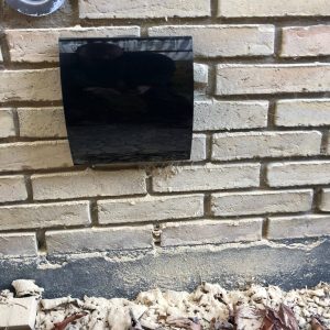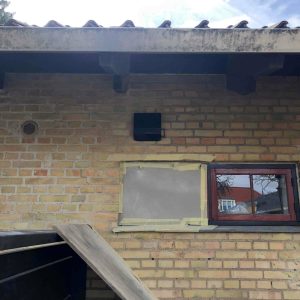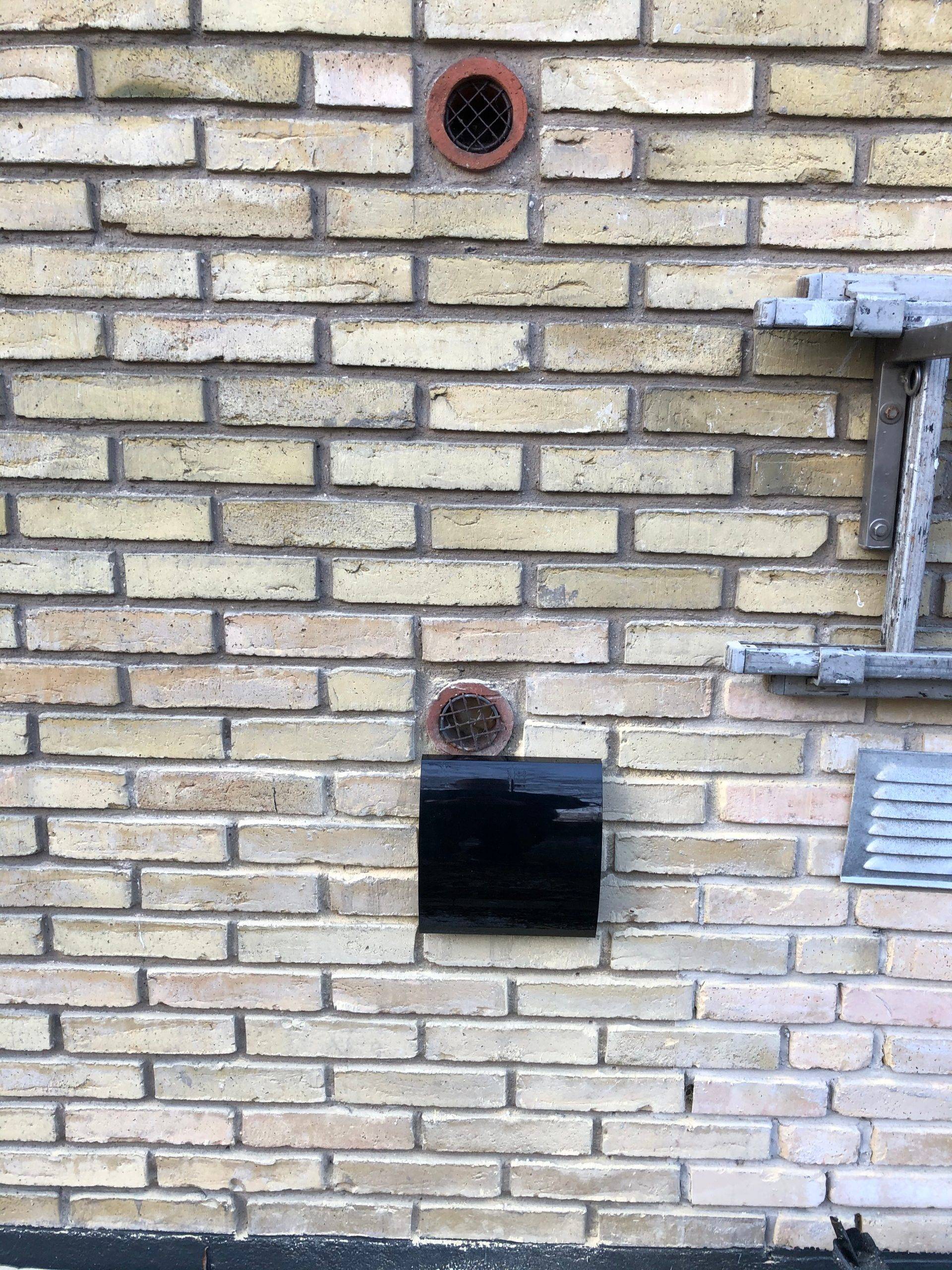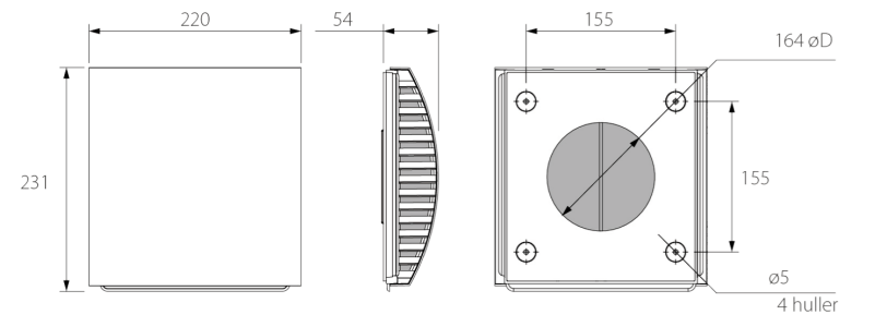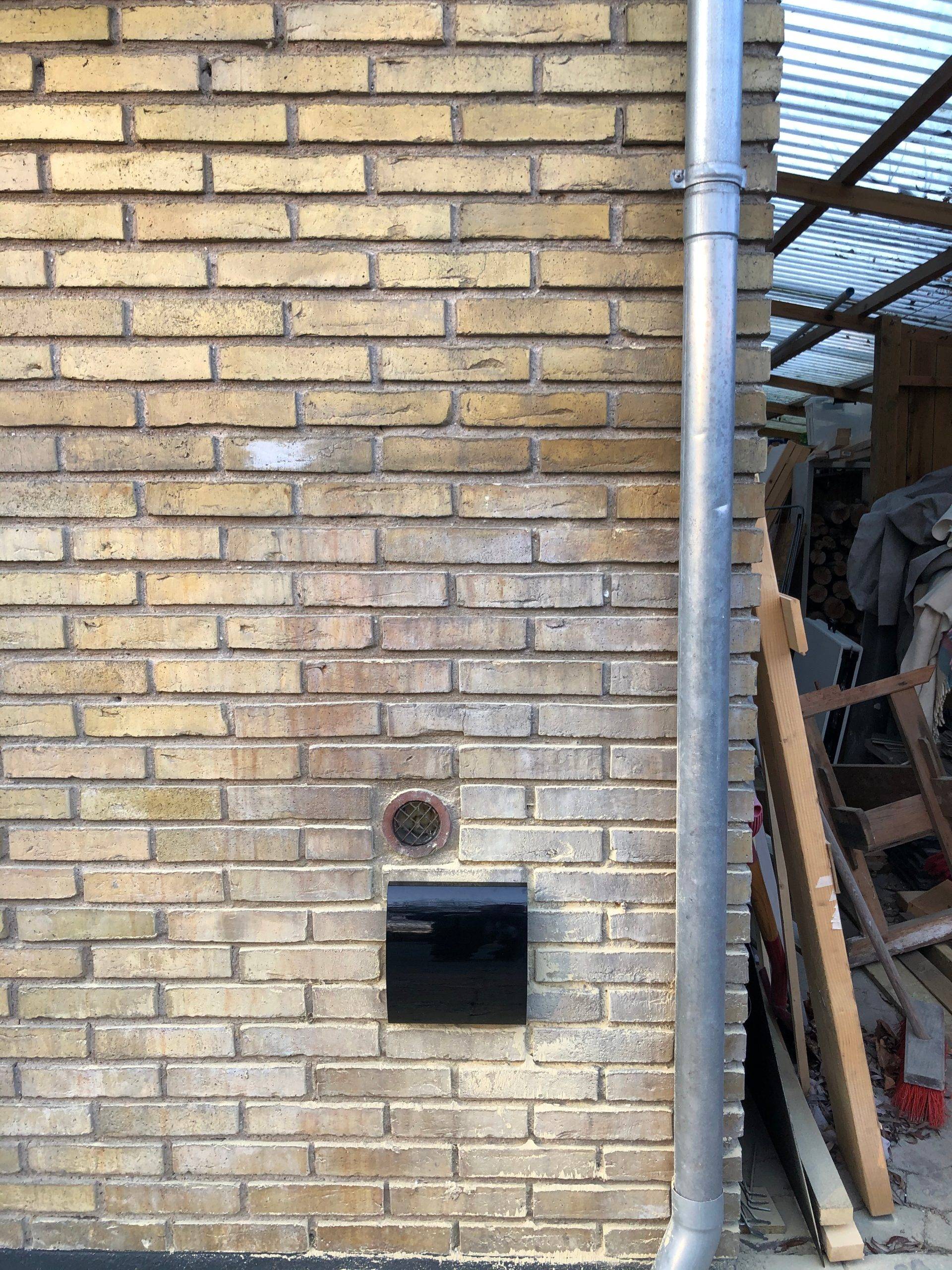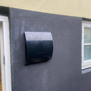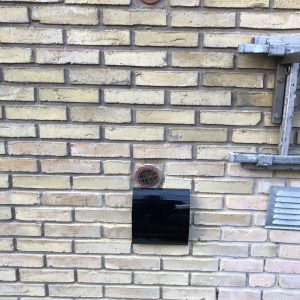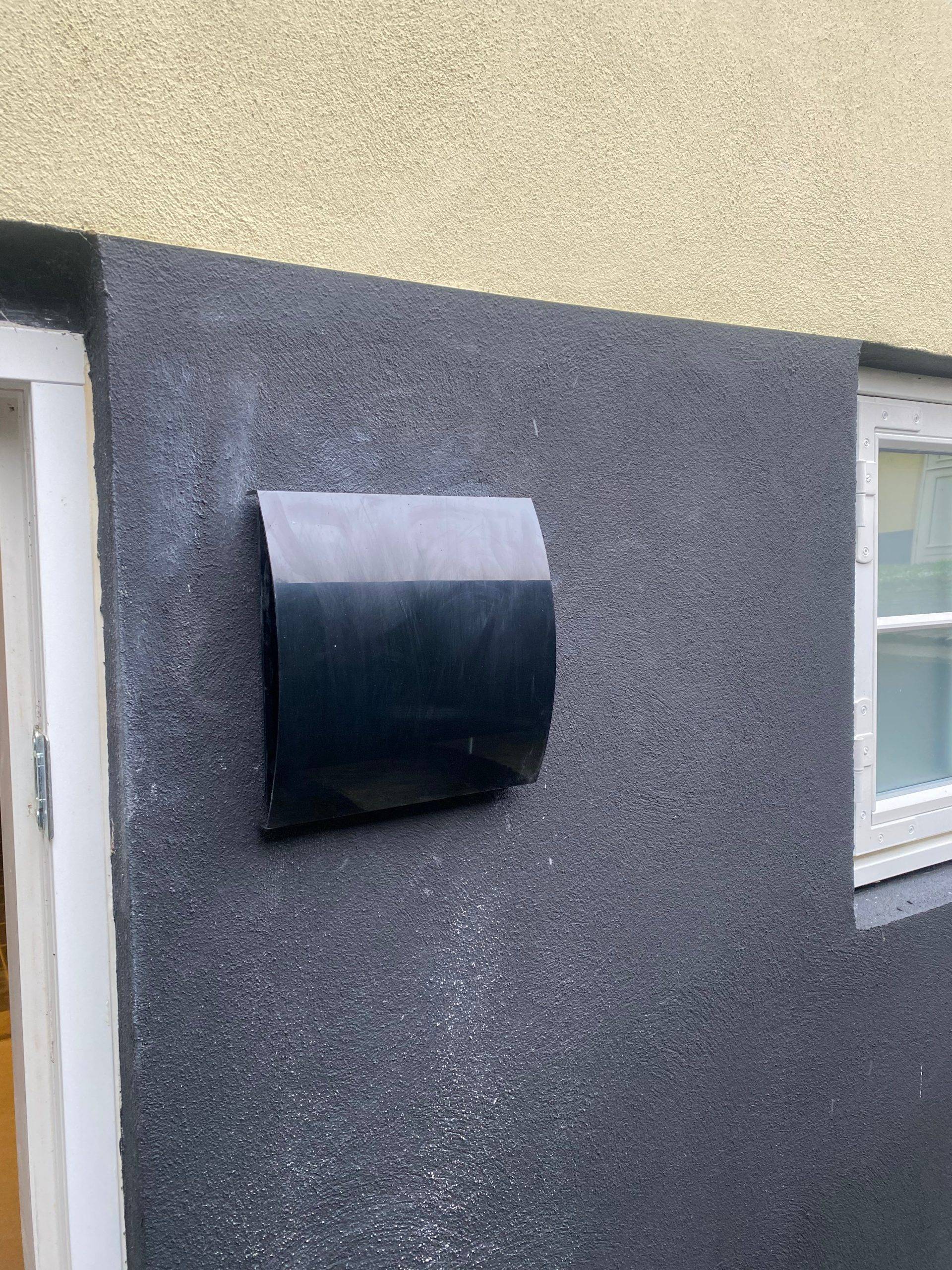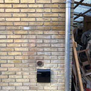 Med Ø160 mm diameter på bagsiden i plast med ind- og udblæsning i siderne.