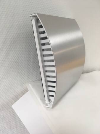 Denne front til Duka og Siku stormskærm er lavet i børstet aluminium og passer som udvendig afslutning til decentrale ventilationsanlæg med varmegenindvinding fra Duka, Siku, Air Pro Harmoni mf. Den klikkes på Duka S-Serie Stormskærm eller tilsvarende fra Siku.