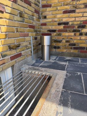 Vores unikke skorsten aftræk er designet til at integrere perfekt med bygningens facade, hvilket sikrer et stilrent og diskret udtryk. Det robuste rustfri ståldesign garanterer lang holdbarhed og en eksklusiv finish, der passer til enhver bygningstype og æstetik.